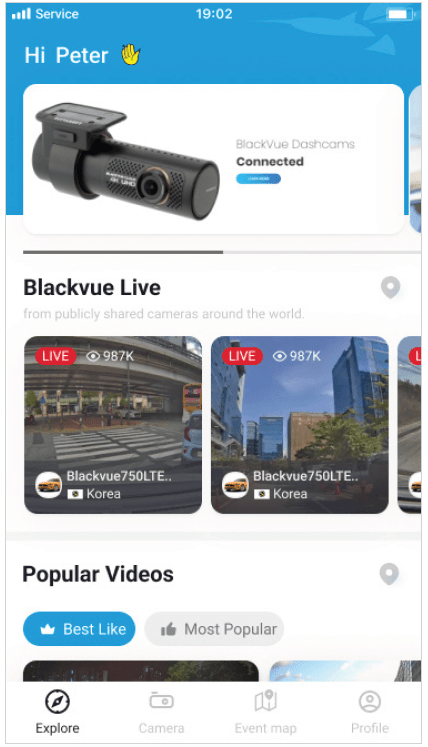 You can use the BlackVue app to connect to BlackVue Cloud and see in real-time where your car is and the dashcam’s live video feed.