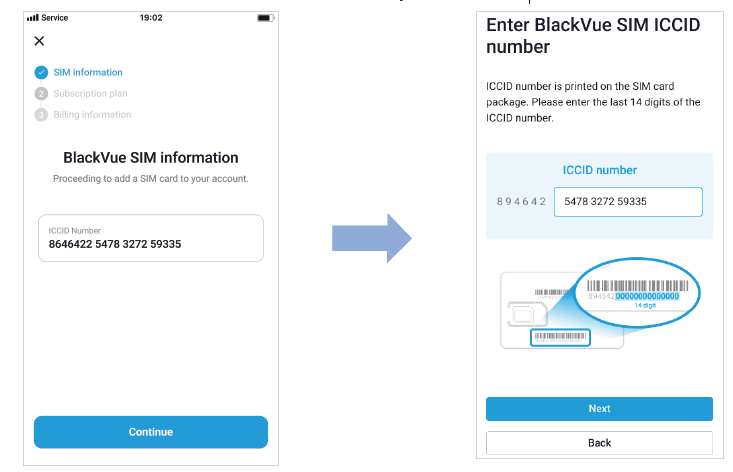 g. BlackVue SIM card subscription is done, Check your data plan and billing date and press OK.