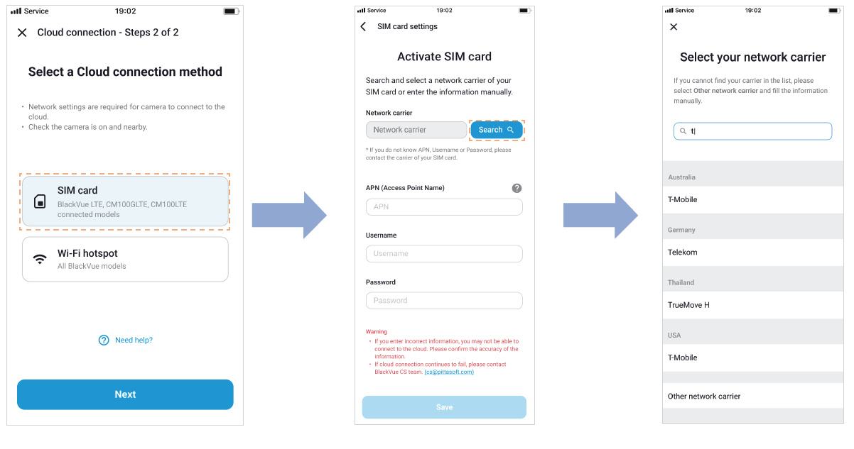4-1. Activate SIM card (BlackVue SIM card / 3rd party SIM card)