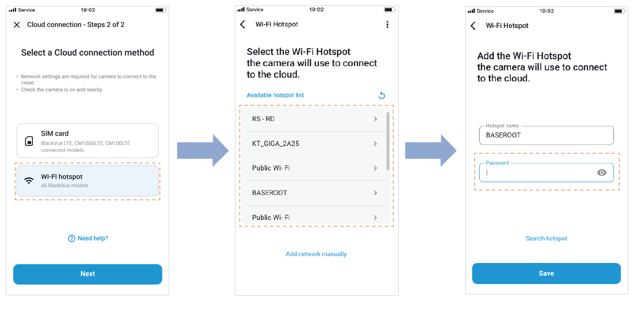 3. Choose one of the following methods to add your BlackVue dashcam to the camera list. Once your camera is added, continue to the steps in ‘Connect to Blackvue Cloud’.