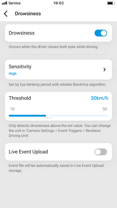 – Speed-related events (acceleration, harsh braking, overspeed, and sharp turn) and speed: It is not affected by either turning it on or off.