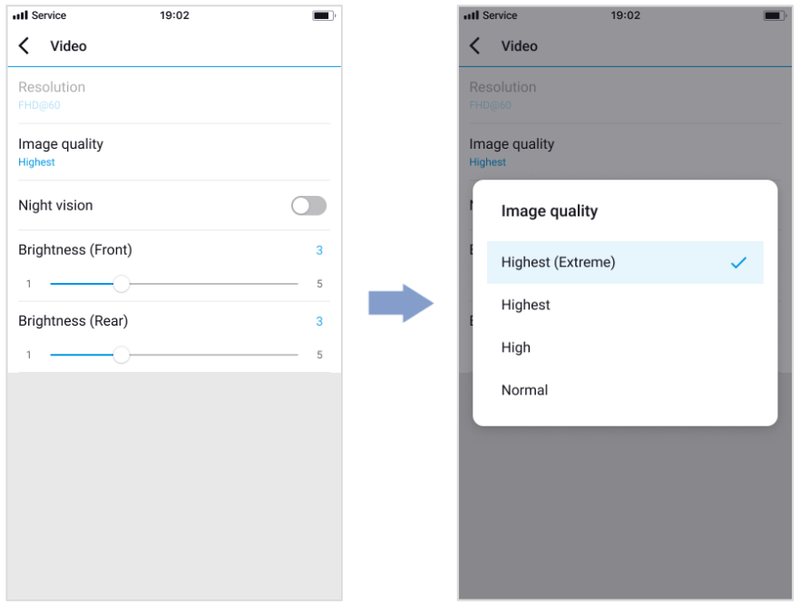 You can adjust the recording image quality (bit rate) settings. Choose between:
