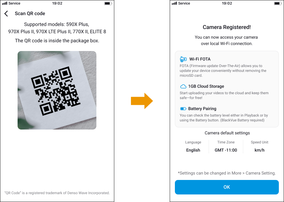 - Once the QR code is recognized, your dashcam will be registered automatically.