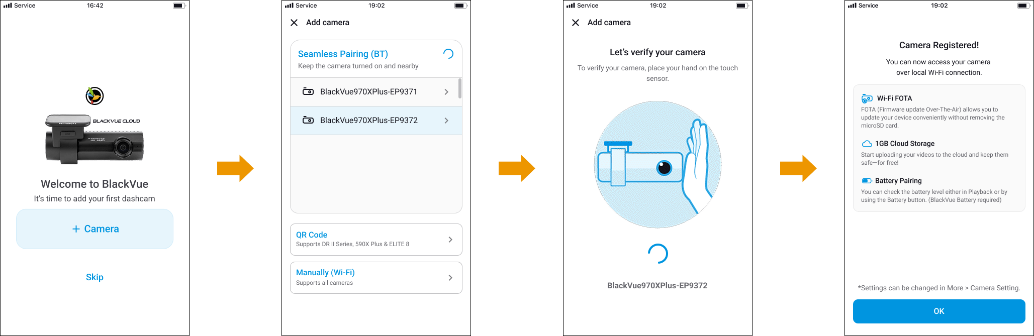 - Follow the on-screen instructions to verify your dashcam by placing your hand on the touch sensor.