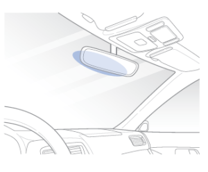 - Attach the front camera to the windshield, behind the rear view mirror.