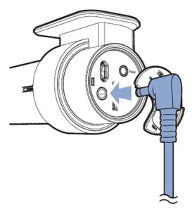 6) Plug the power cable into the front cameraâs DC in port. The dashcam will power on and start recording.