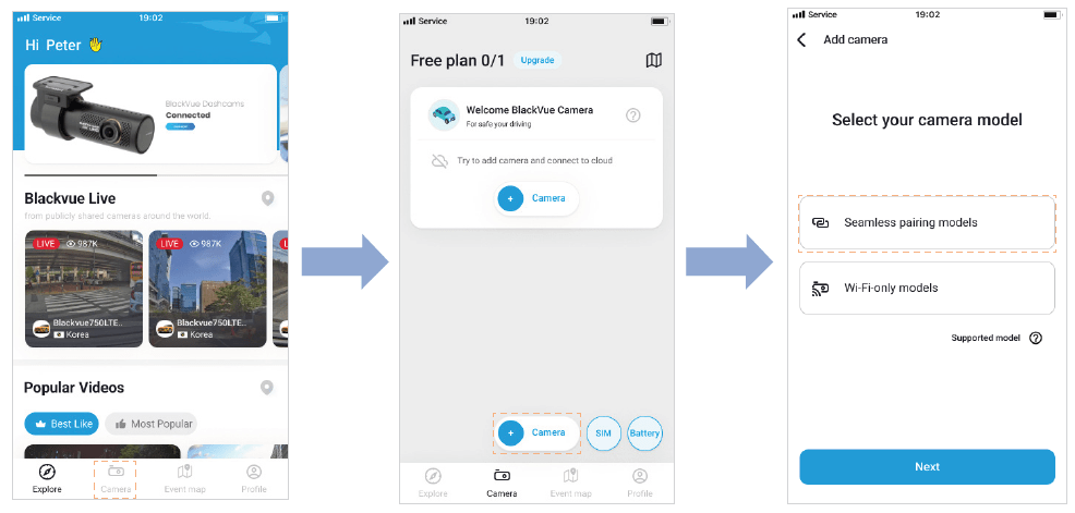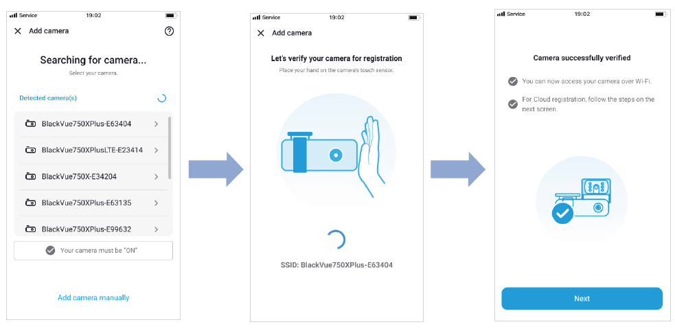 3. Choose one of the following methods to add your BlackVue dashcam to the camera list. Once your camera is added, continue to the steps in ‘Connect to Blackvue Cloud’.