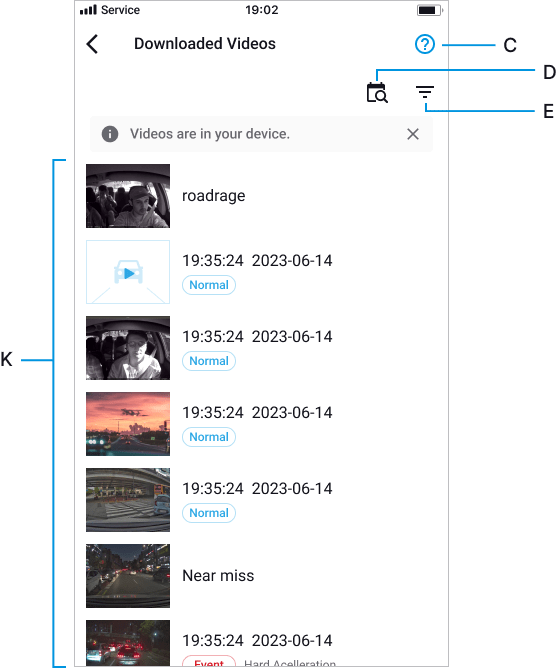 K: Downloaded Video List