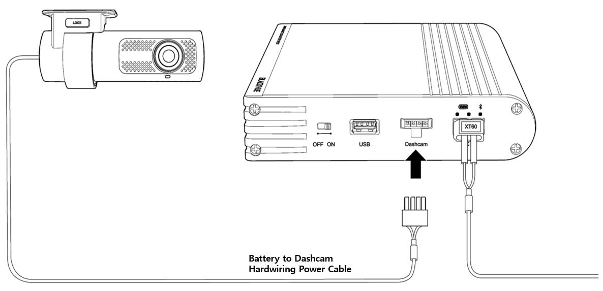 g. Use the Battery-to-Dashcam hardwiring cable to connect it into the port labeled ‘Dashcam’ in the Ultra Battery.