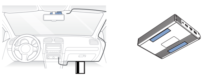 3. Use a pry tool to lift the edges of the windshield trim/molding and tuck in the power cord. Use the power-supplied Velcro strips to fix the Ultra Battery in place.
